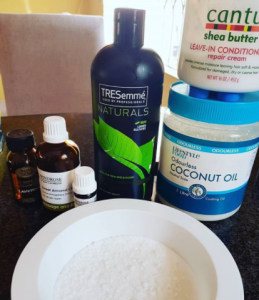 A great concoction to start with can include Coconut oil–  one of the few oils that penetrates the hair instead of just coating the hair strand;and Tea Tree Oil– which is antibacterial, antifungal, antiviral, anti-inflammatory and is packed with antioxidants. Castor Oil promotes hair growth (especially for those of us with hairline issues) and keeps hair frizz-free and moisturised so its great to add in. These are my staples, however adding jojoba, olive and other oils kicks it up a notch. Tip: Mix the oils into a glass or heat safe bottle, then leave it for 2min in a cup or bowl with boiled water. Make sure to test the oil on your wrist before applying it to your scalp. Leave it in for 20 min with a shower or heating cap on then wash out and condition.